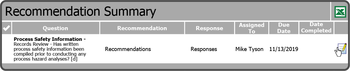To complete an Audit Checklist Question Recommendation, select the Edit Icon