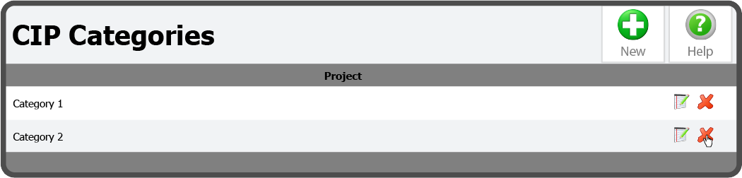 To delete a CIP Category, select the Delete Icon