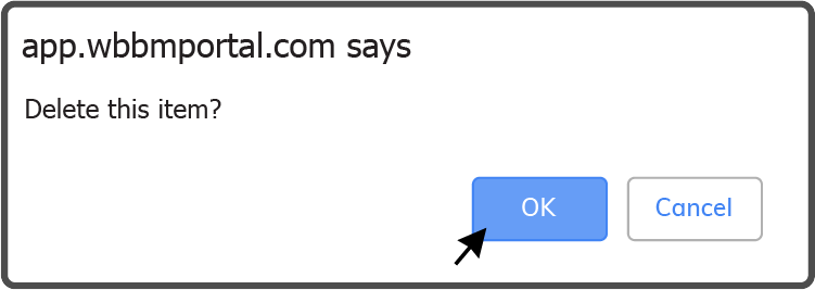 Confirm you want to delete the CIP Category by selecting the OK Button