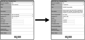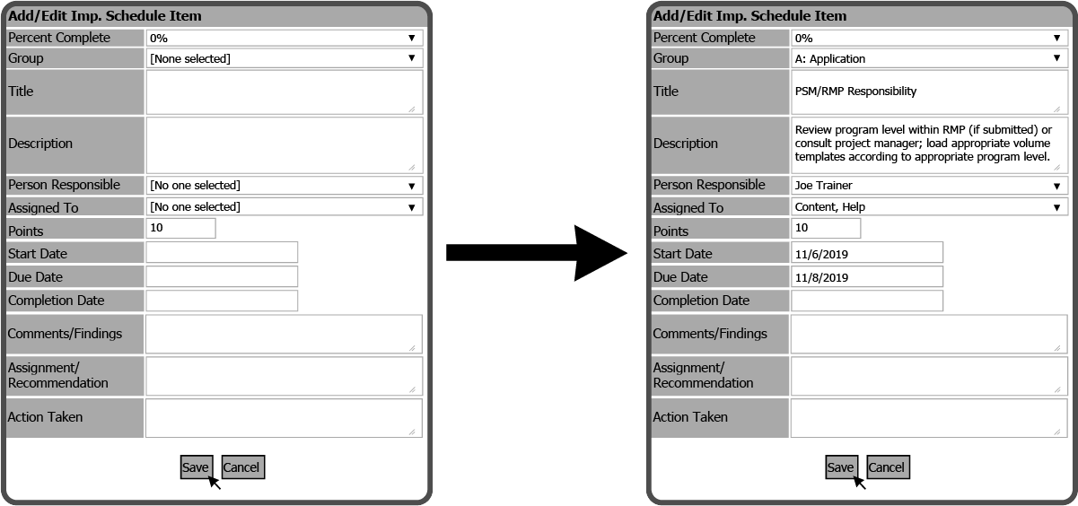 Both options will open the Add/Edit Imp. Schedule Item window. Fill out the needed information and select the Save Button