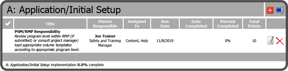 There are two ways to add Items to an Implementation Schedule. The first way is to select the Add Item Button