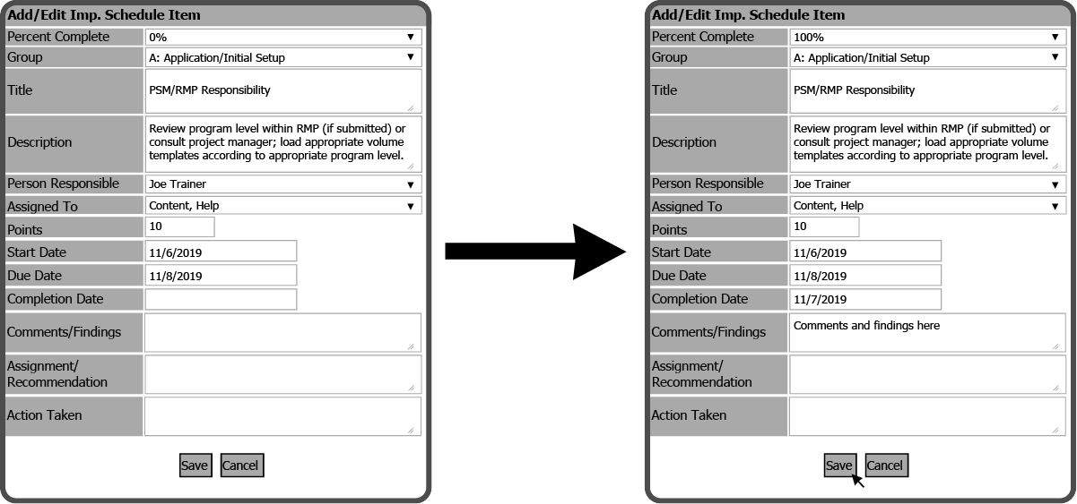 Edit Implementation Schedule Item