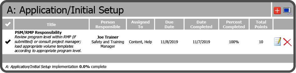 To edit an Implementation Schedule Item, select the Edit Icon