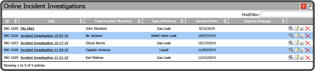 located to the far right of the Online Incident Investigations header.