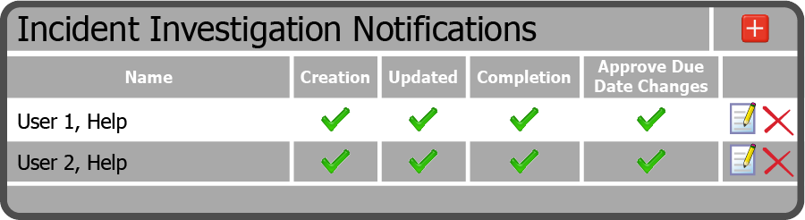 | Completion | To notify the person when an Incident Investigation is completed |