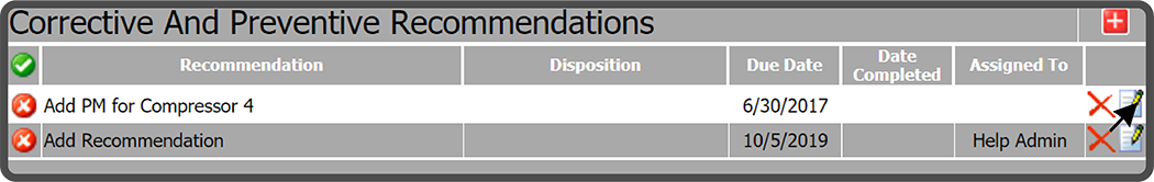 The change is now displayed in the Corrective And Preventative Recommendations grid.