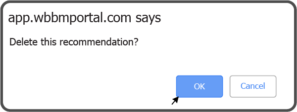 Confirm you want to delete the Incident Investigation Recommendation by selecting the OK Button
