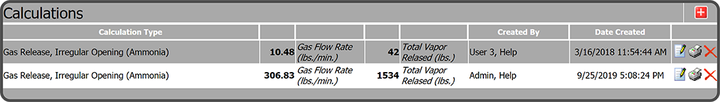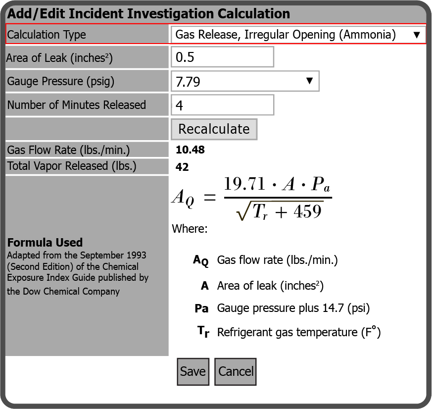 II Calculation Type: Gas Release, Irregular Opening (Ammonia)
