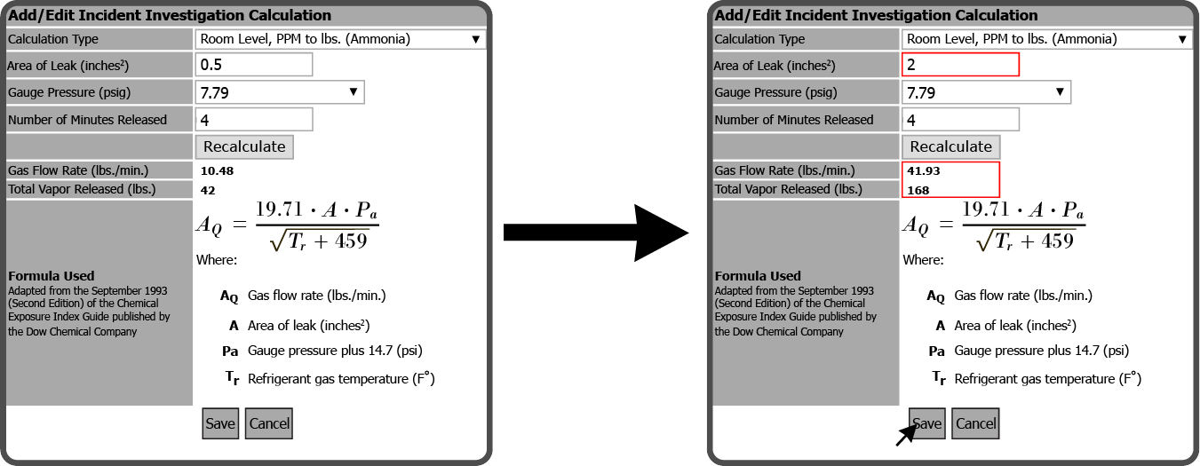 This opens the Add/Edit Incident Investigation Calculation window. Make the edits you want to make and select the Save Button