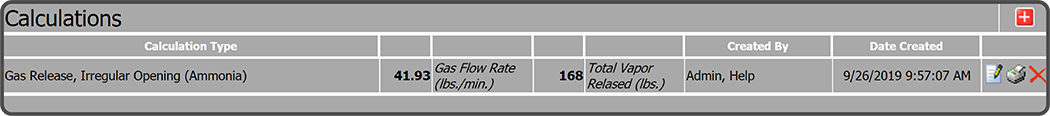 II Calculation Type: Gas Release, Irregular Opening (Ammonia)