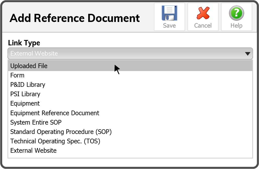 | Equipment Reference Document | Links to a Reference Document for a piece of equipment. |