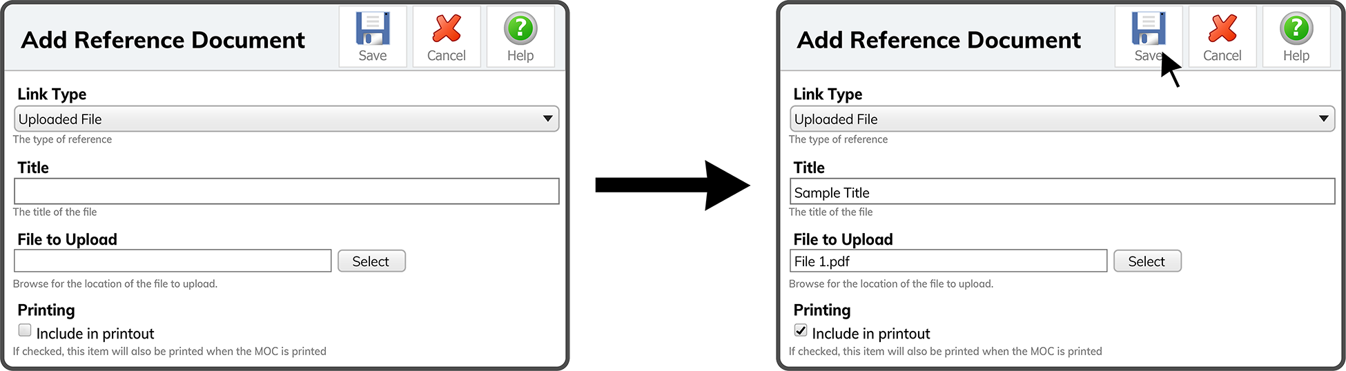 if you want to include this reference file in the MOC Printout — and select the Save Icon