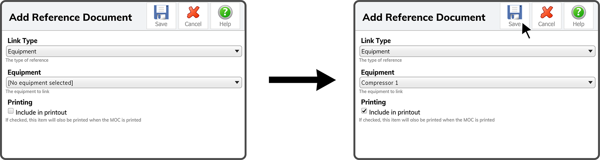 if you want to include this reference file in the MOC Printout — and select the Save Icon