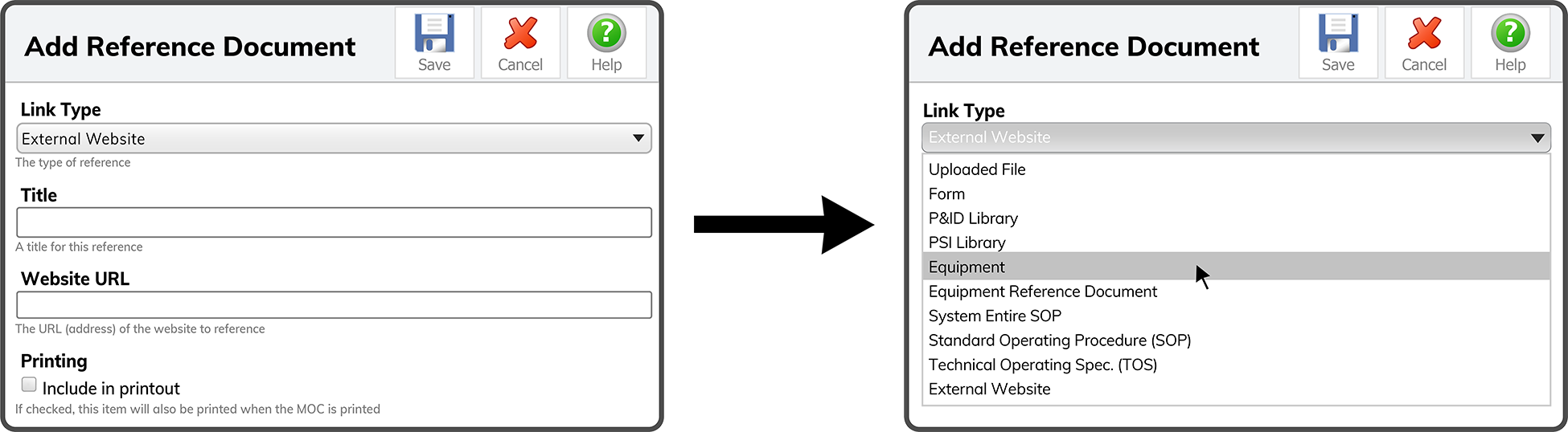MOC Reference Link Type - Equipment