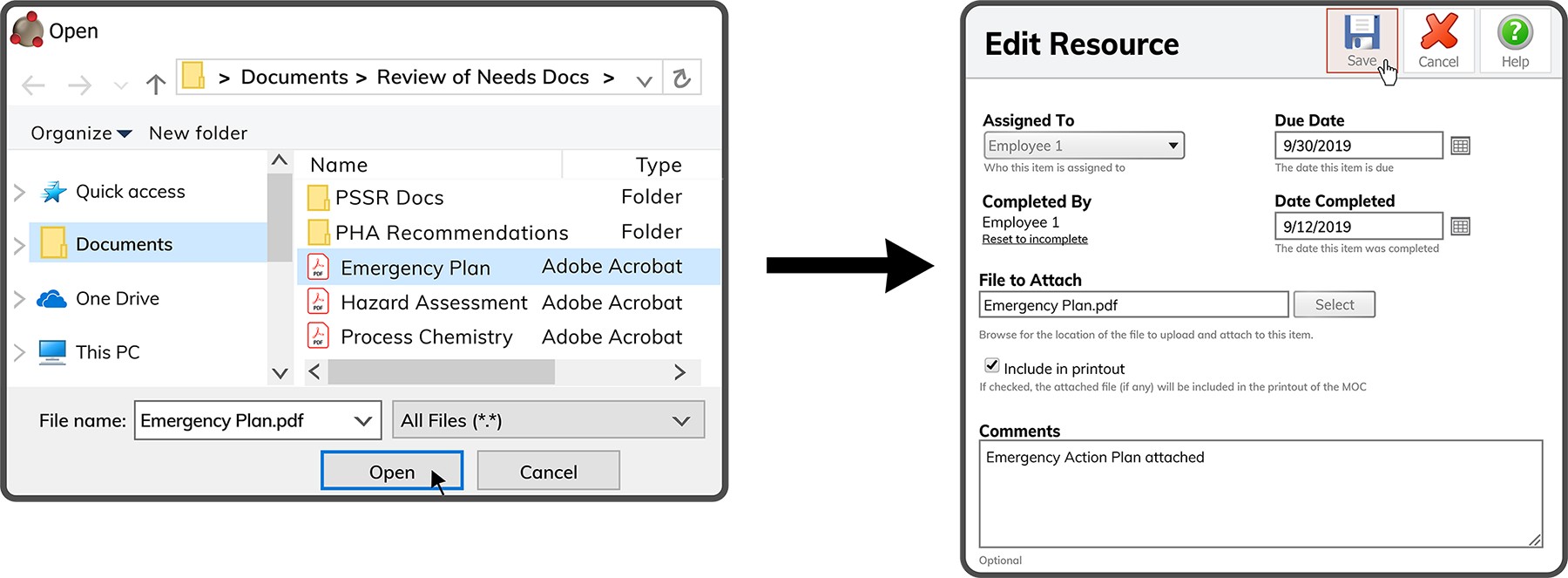 if you want to include this attached file in the MOC Printout — add Comments (optional), and select Save