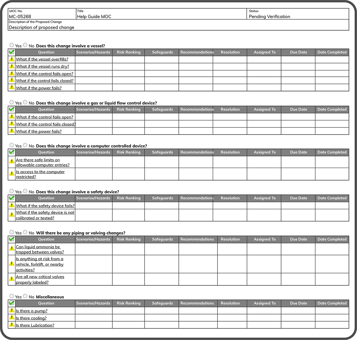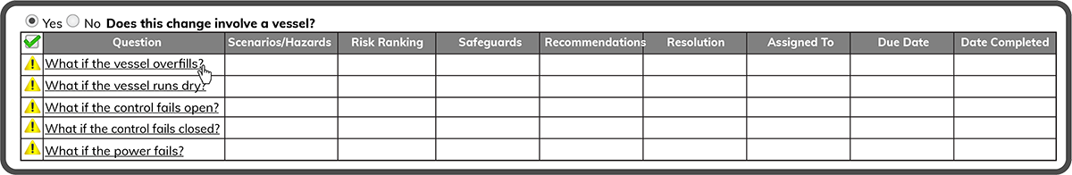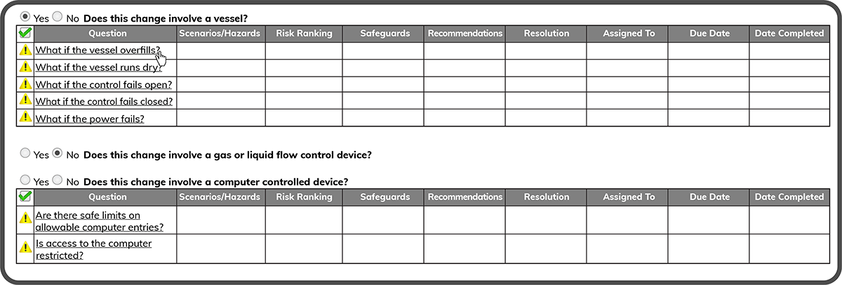 Complete Process Safety Questionnaire (PSQ)