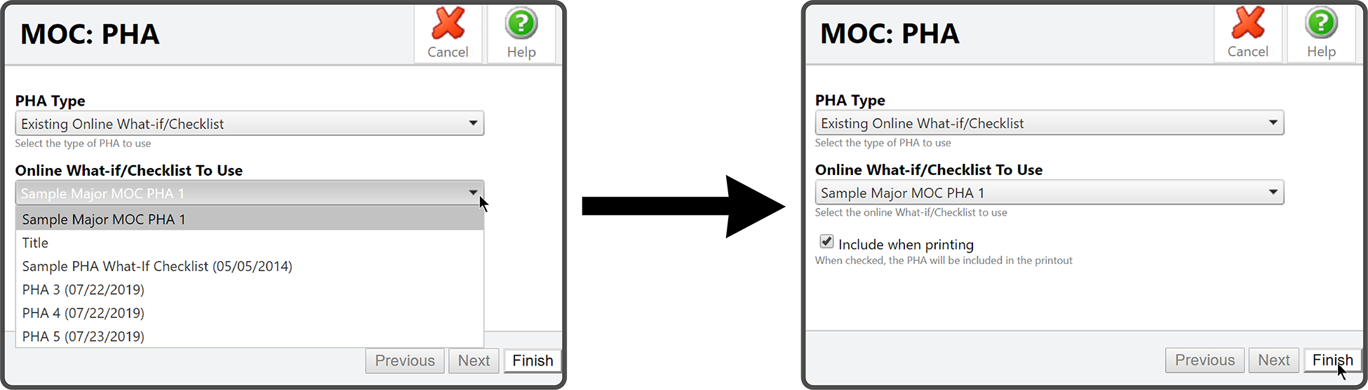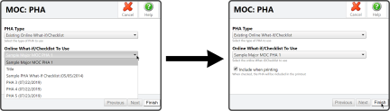 Then select the Online What-If/Checklist you would like to use — If you want to include the PHA when printing the MOC, select the Include when printing checkbox