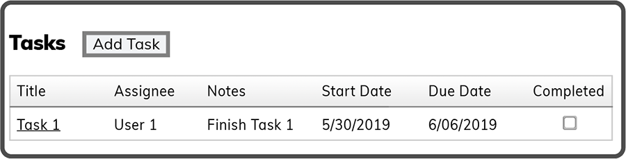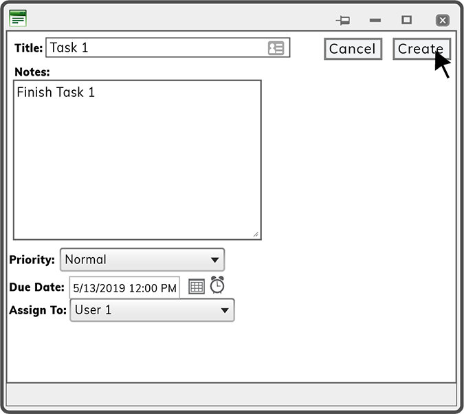 Enter a Title, add Notes, select a Priority, Due Date, and select an Assignee from the drop down. Then select the Create Button