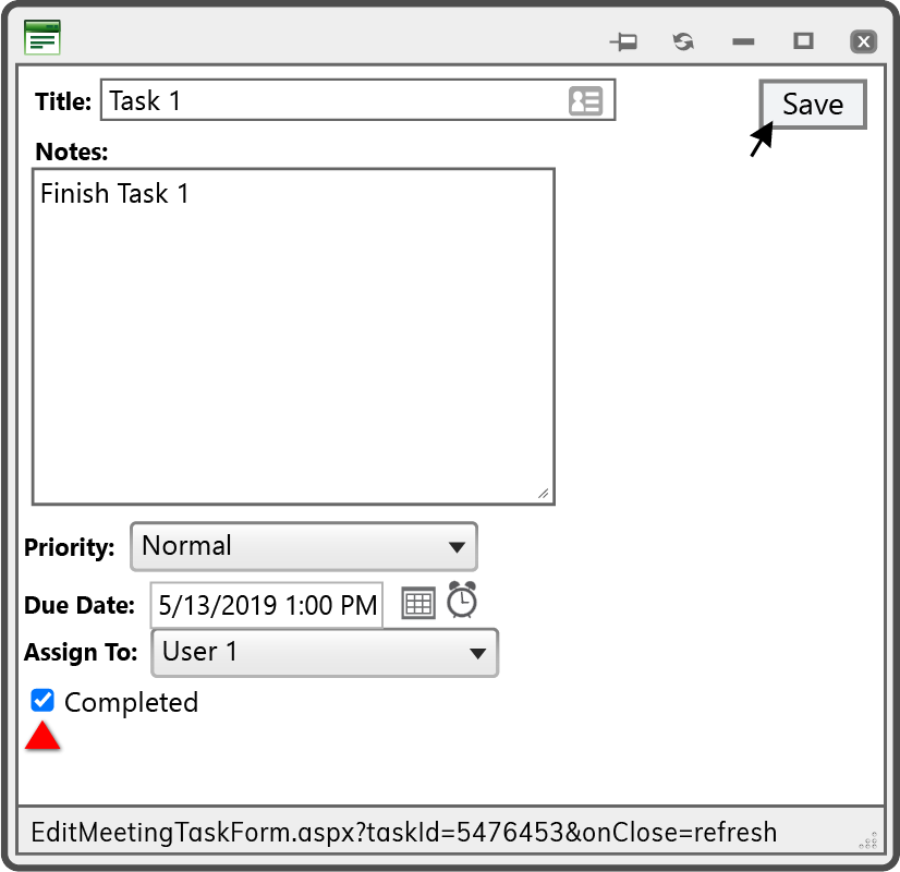 To complete a Meeting Task, select the Task by its Title.