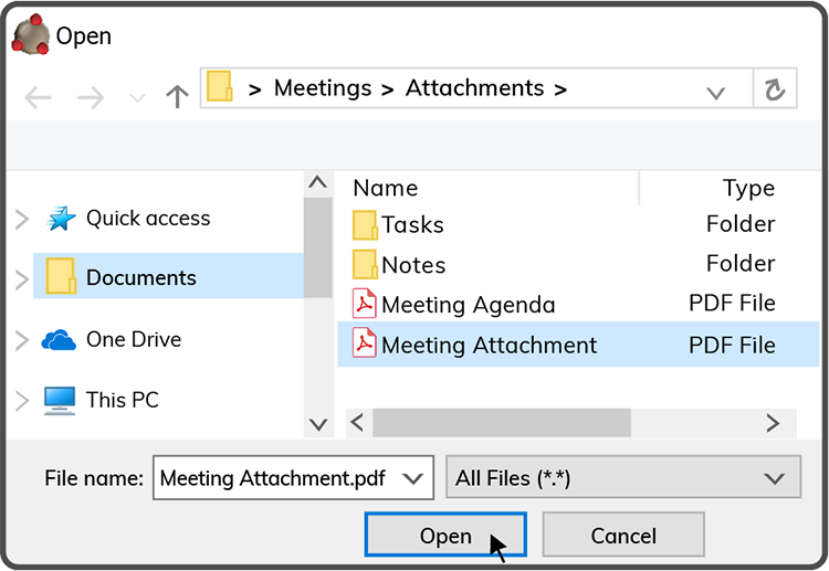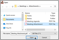 To add an Attachment to a Meeting, select the Select Attachment Button