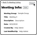 The second way you can print a Meeting is from the Meeting Details page within a Meeting. Select the Print Button