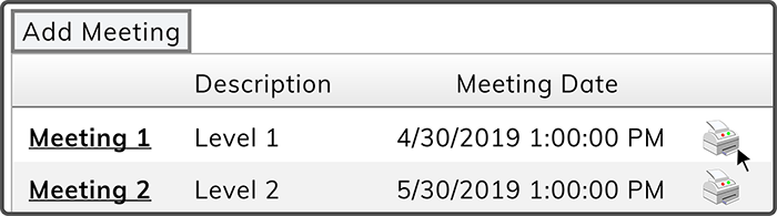 The first way is directly from the Meeting Grid. Select the Printer Icon