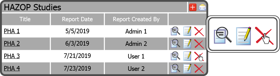To delete a HAZOP PHA select the Delete HAZOP Icon