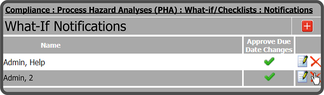 To delete a What-If Due Date Change Approval Notification, select the Delete Notification Icon