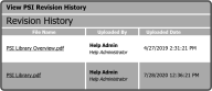 The will open the View PSI Revision History window. This displays the previous revisions.