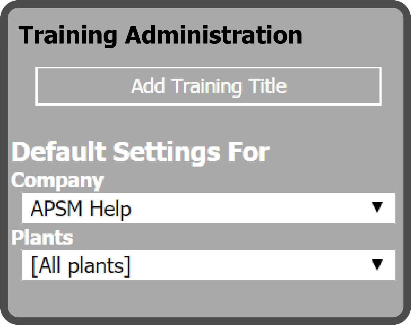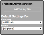 To setup Training at the Company level, ensure your company is selected in the Company field on the left side of the page and verify the Plants field has [All Plants] selected.