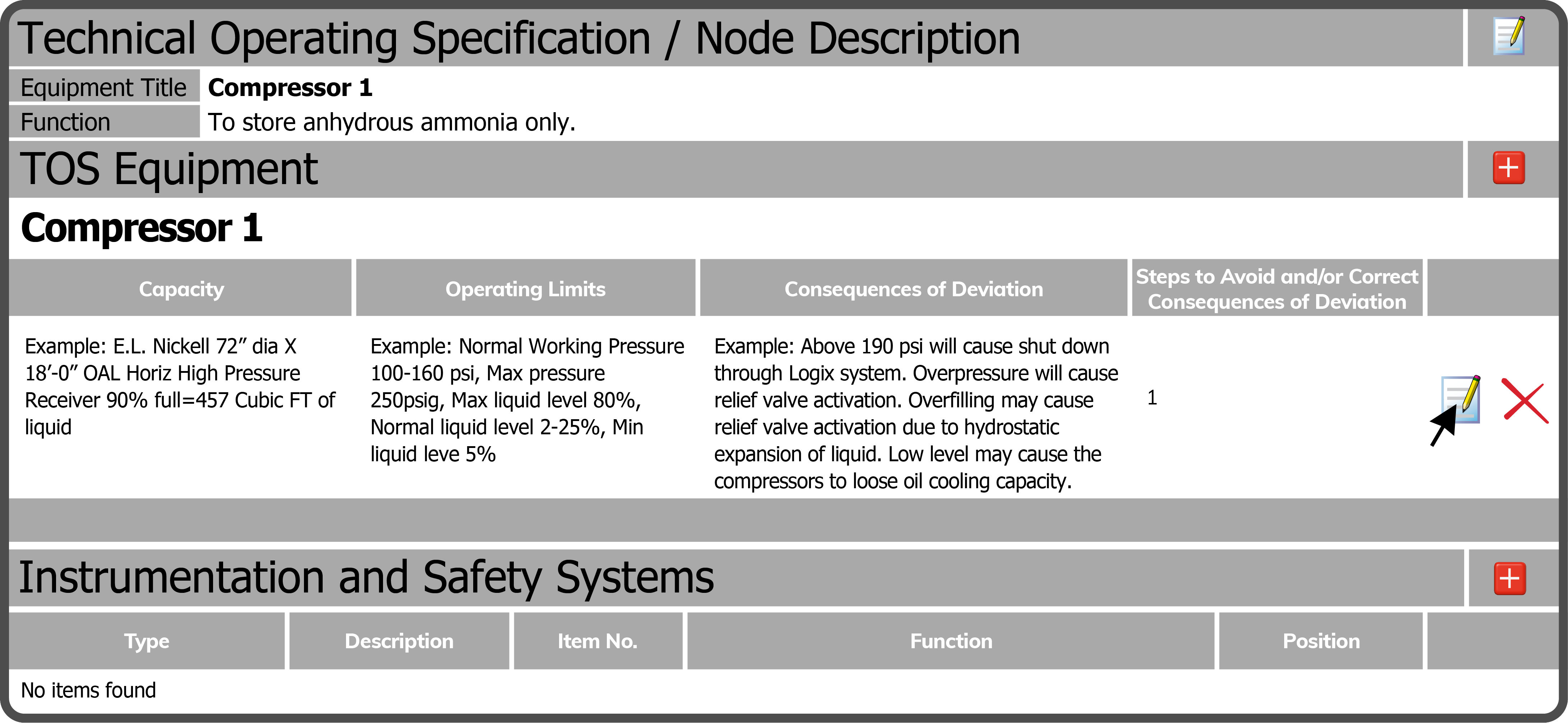 To edit TOS Equipment select the Edit Icon