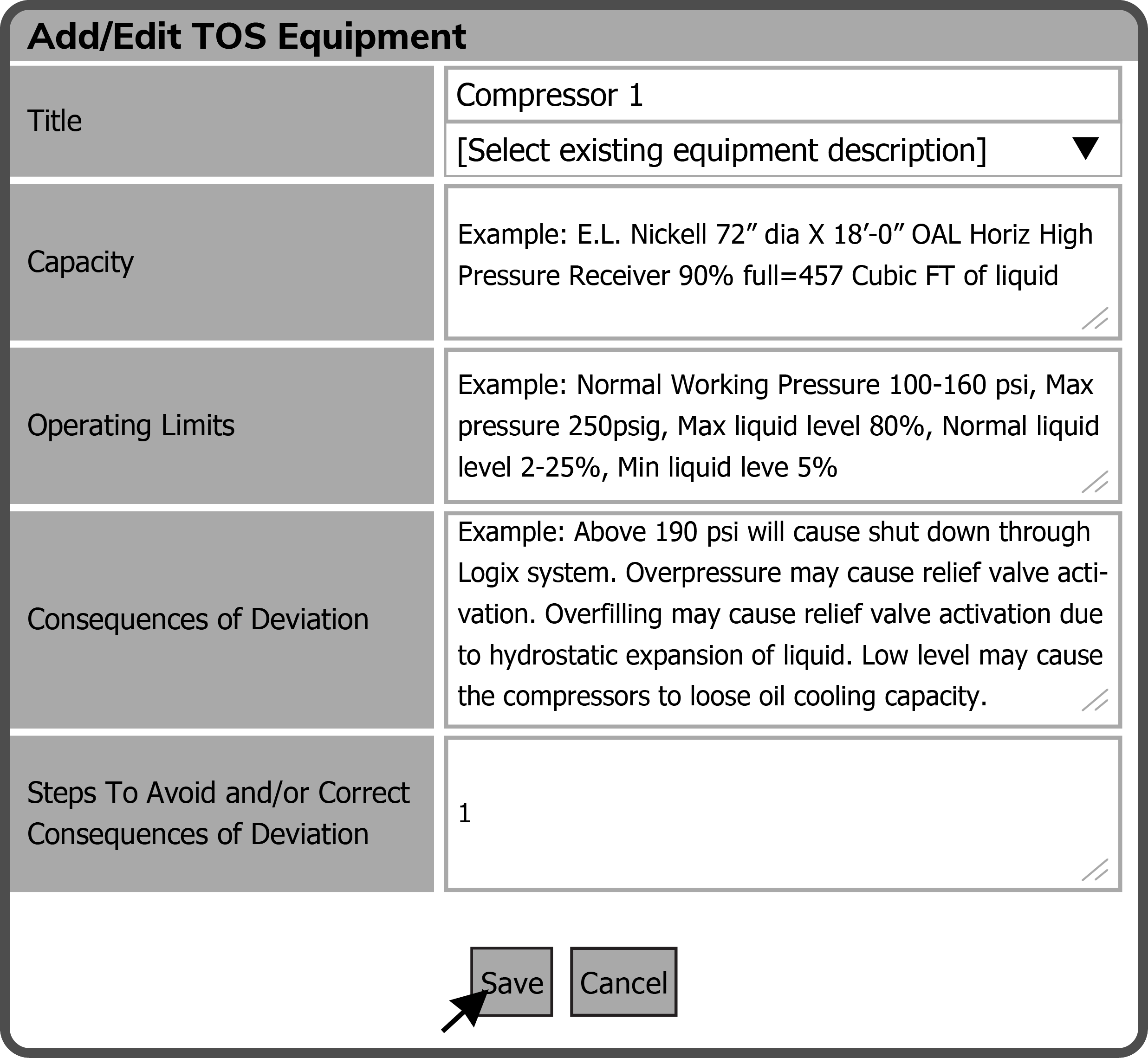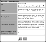 This will open the Add/Edit TOS Equipment window. Make the changes you want and select the Save Button