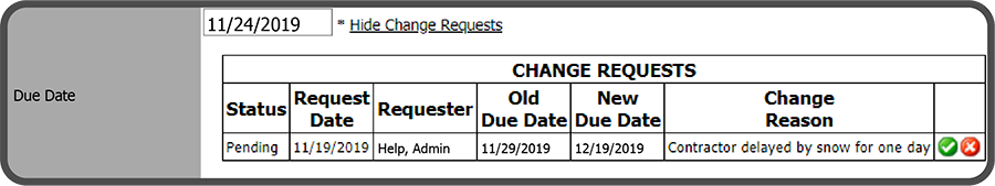 This will open the Approve / Deny this Due Date Change Request window. Select the OK Button
