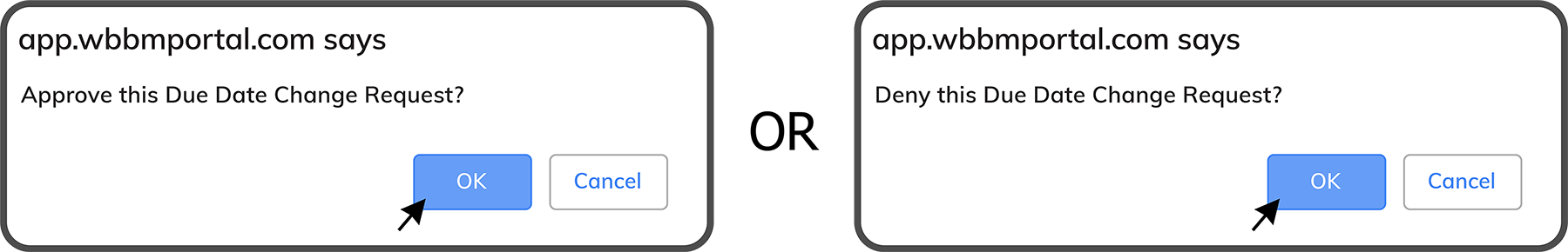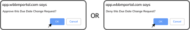 to confirm you want to Approve or Deny the Due Date Change Request.